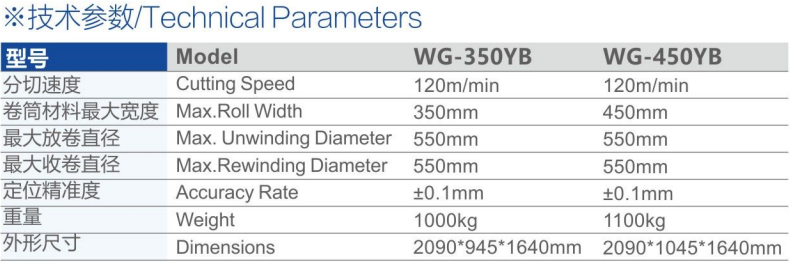Scope Of Application: The WG-350YB model circular pressing circular die-cutting and slitting integrated machineadds a set of circular pressing circular die-cutting stations to the WG-350Fll slitting machineThis machine is suitable for die-cutting and slitting of blank self-adhesive labels, allowingproducts to be slitted and rolled in one go from the die-cutting knife.lt has functions such asautomatic meter counting,counting,length and quantity setting,automatic stop,automaticinflation, magnetic powder tension, dual winding shaft rotation and displacement deviceand automatic deviation correction control by optoelectronics for unwinding. The overalstructureis compact, fast, efficient, accurate cutting, easy to operate, and runs smoothly