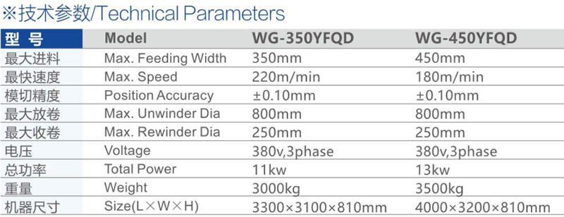 Related products: WG-350Y/450Y Rotary Die Cuting And Slitting Machine WG-350YB/450YB Rotary Die Cuting And Slitting Machine WG-350YI/450YI dual station circular pressing circular die-cutting and slitting integratedmachine WG-35OYM/45OYM Full Rotary & Intermittent Die Cutting Machine WG-35OYFQ/450YFQ Fully Automatic Rotary Die Cutting & Slitting & Rewinding Machine